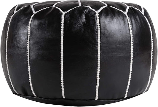 MOROCCAN POUF LUXURY HANDMADE GENUINE LEATHER BLACK