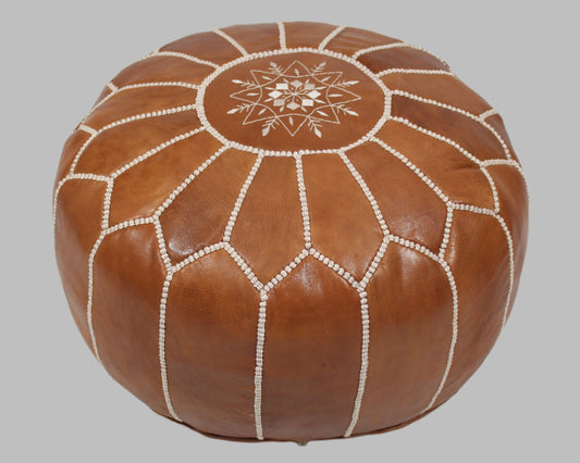 MOROCCAN POUF LUXURY HANDMADE GENUINE LEATHER TAN