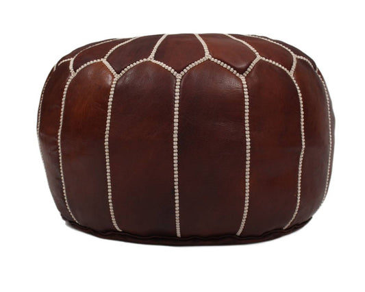 MOROCCAN POUF LUXURY HANDMADE GENUINE LEATHER DARK BROWN